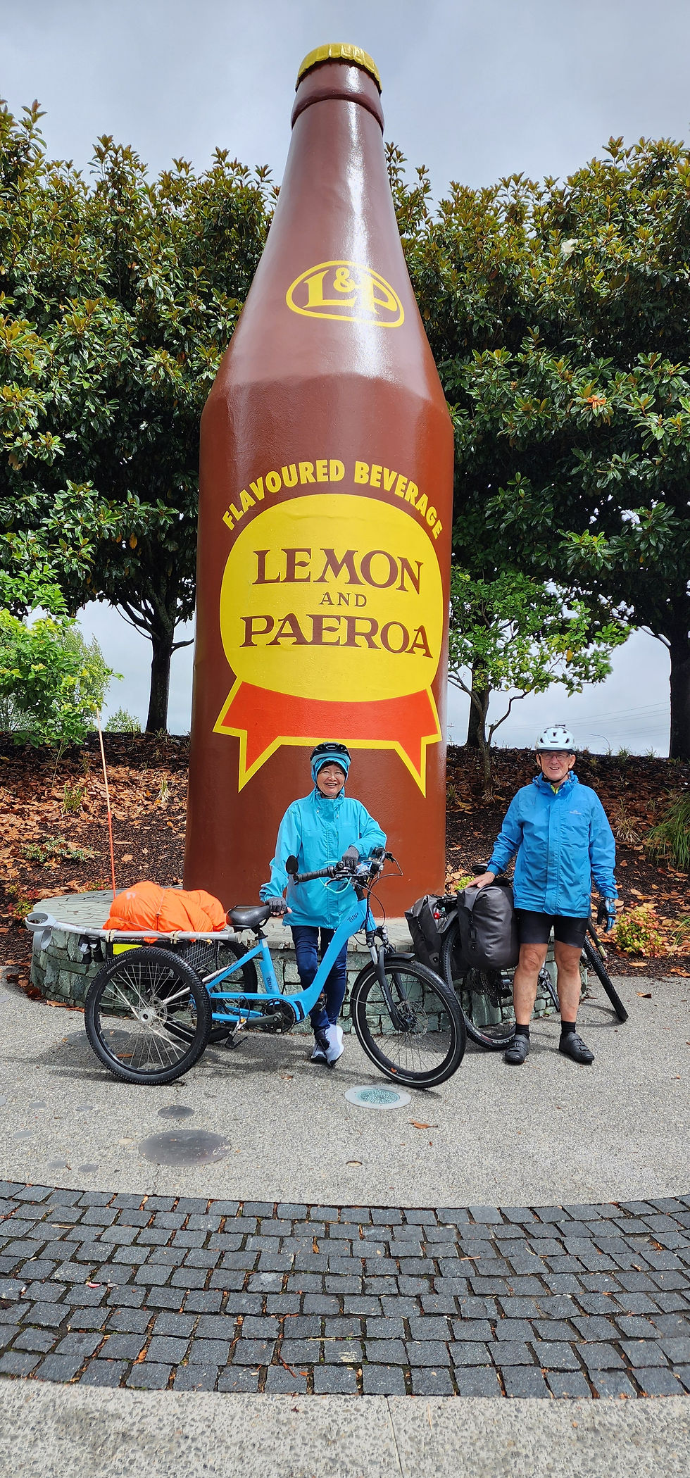 Te Aroha, under the mountain of love ("Aroha" - to love, feel pity, feel concern for, feel compassion, empathise) We stop, but just for a couple of photos, we are keen to get the day's riding over now and Matamata is still 35km away. Sau Keng picks up the pace, the batteries are doing very well on this flat track, she has plenty of power in reserve.