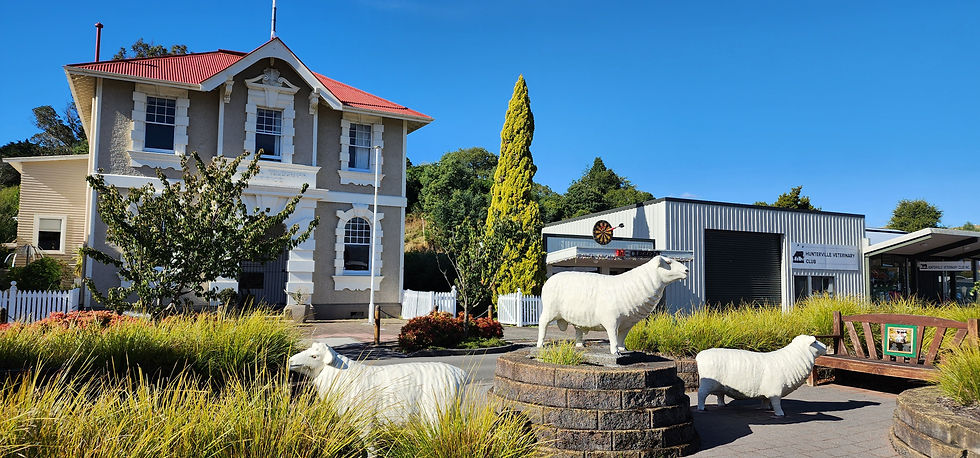The pattern repeats several times, steep descents and long gentle climbs with a bite at the end, until we have just 3 kilometers to go. There is always one more climb and this time we get the steep side - but Hunterville is over the hill and we are home for the night :-)