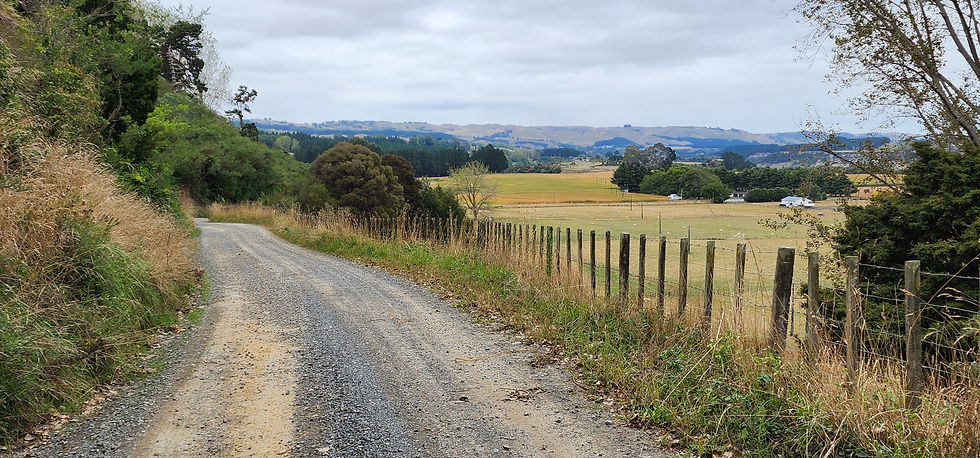A farmer on a very big tractor meets us on the road, stops and warns us "There is a bridge closed up ahead, so you will get more traffic" We continue and eventually reach our first intersection and then sealed road and then the road to Rangiwahia. We have not seen any vehicles other than the tractor. How quiet is this road normally?