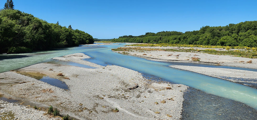 Eventually we reach the Rangitata river, where this water is coming from. It is quite a big river, with plenty of water though not as high as the Rakaia was. I think the milkiness is because the riverbed keeps moving around and the water picks up silt it previously deposited.