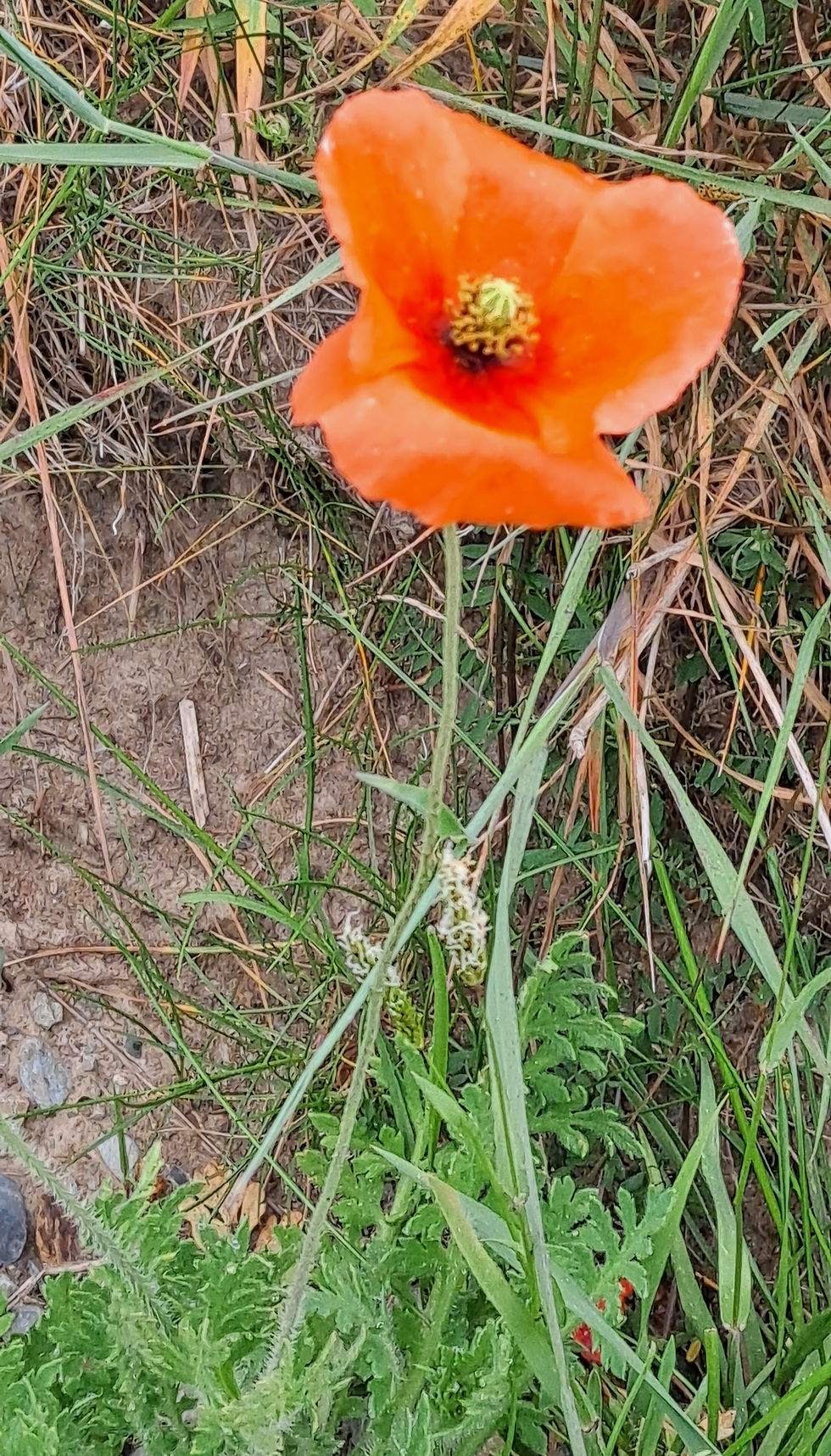 The cycleway is nice, but it's beside the main road. Finally we turn off and ride beside the Tengawai river near Cave. It's so nice to be away from the traffic. This is a smallish braided river, nice and clean with interesting cliffs in the background. Lupins are not the only colourful flowers around, these orange/yellow ones are beautifully intense. One side of the riverbank has been cleared for at least a couple of kilometers. Why? Flood prevention?