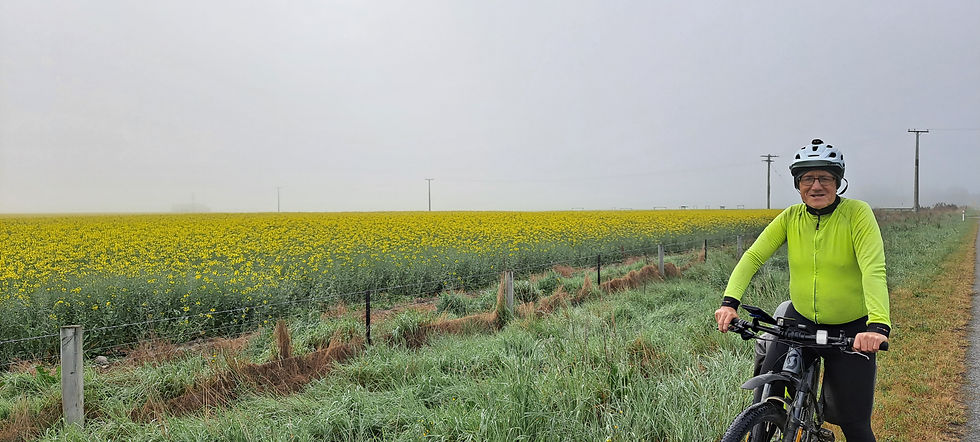 We cross the Opihi river and turn upstream. This is Google's recommended route, which our landlady agrees is a good choice. There is a cycleway beside the main road (SH8) but this road should be quieter and more pleasant.
