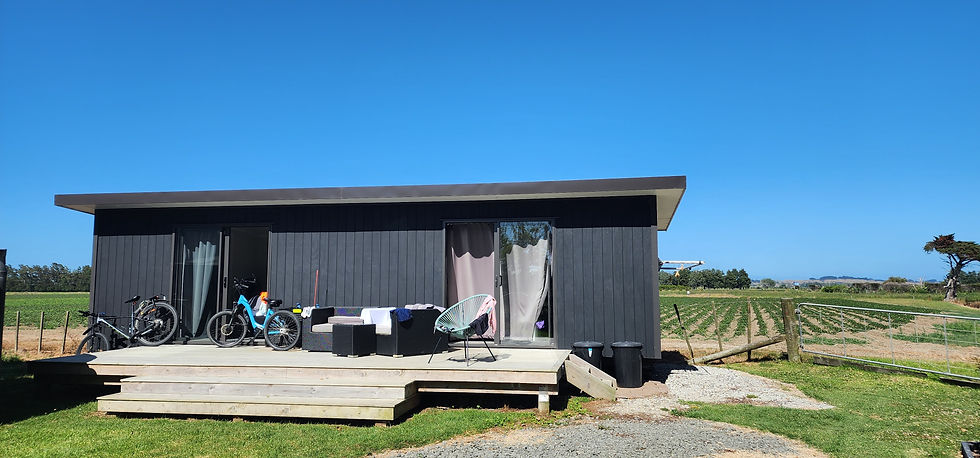 This morning's ride was a joy. The 6km to our accommodation is probably the worst riding so far. SH12, dead straight into a strong headwind, more and faster traffic (though nothing alarming) I draft left and behind/beside Sau Keng, noticeably easier riding just here. It's also much easier when we are passing shelter belts - impressively so. Anyway only 4km and we arrive.